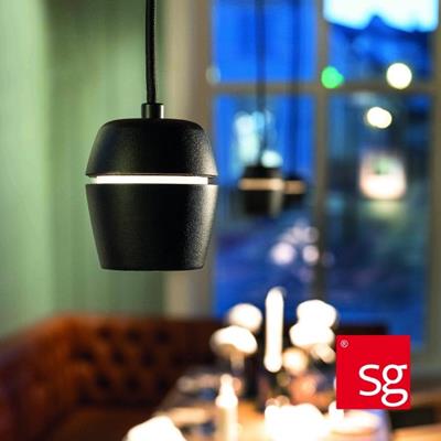 SG Lighting ZIP Jelsa verbindet funktionale Spots und dekorative Pendelleuchten in einem Schienensystem. Die drehbare Frontblende gibt einen Lichtschlitz frei, der dem Aufbau eine ästhetische Dimension verleiht.