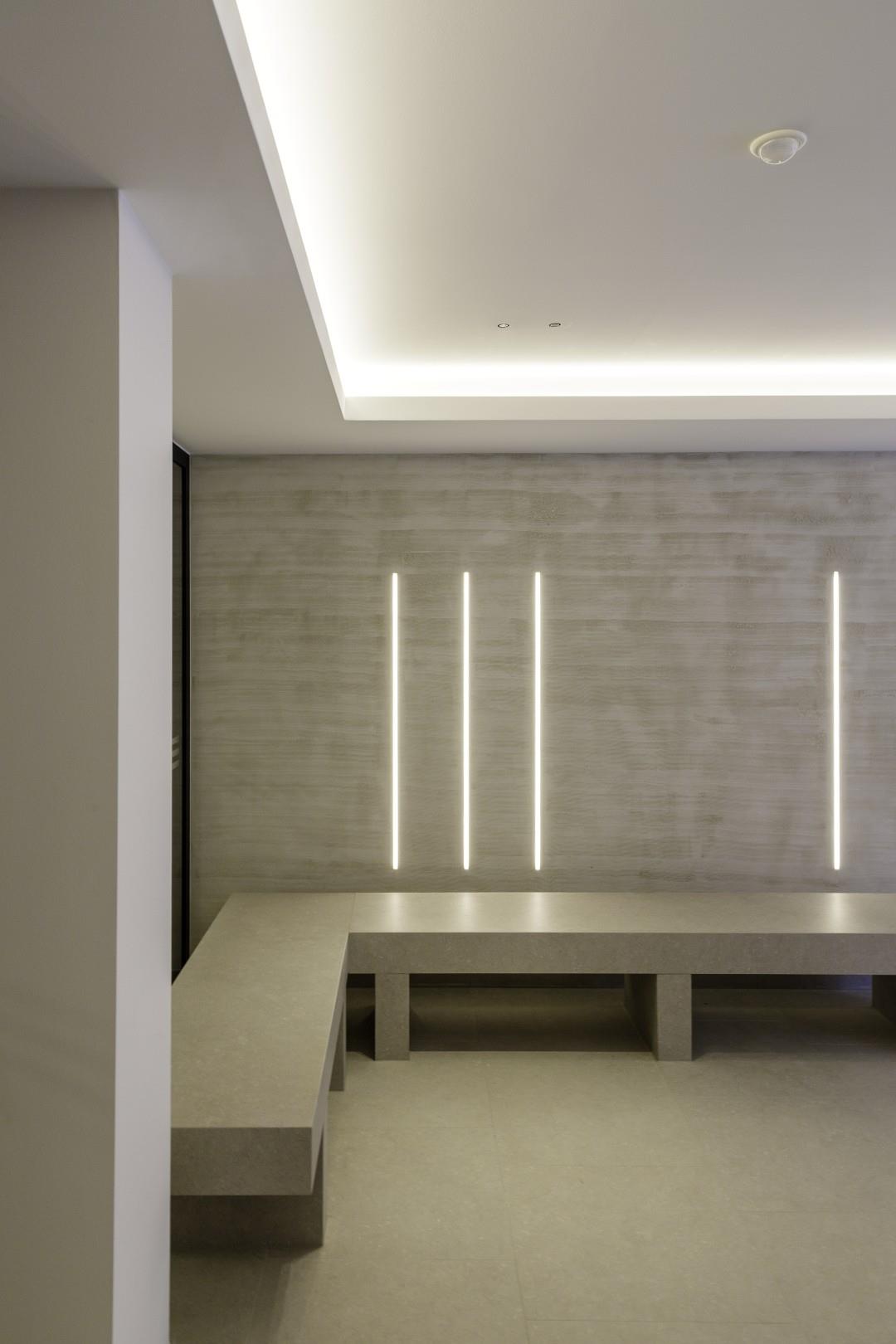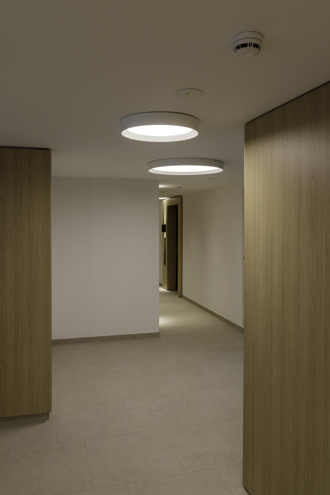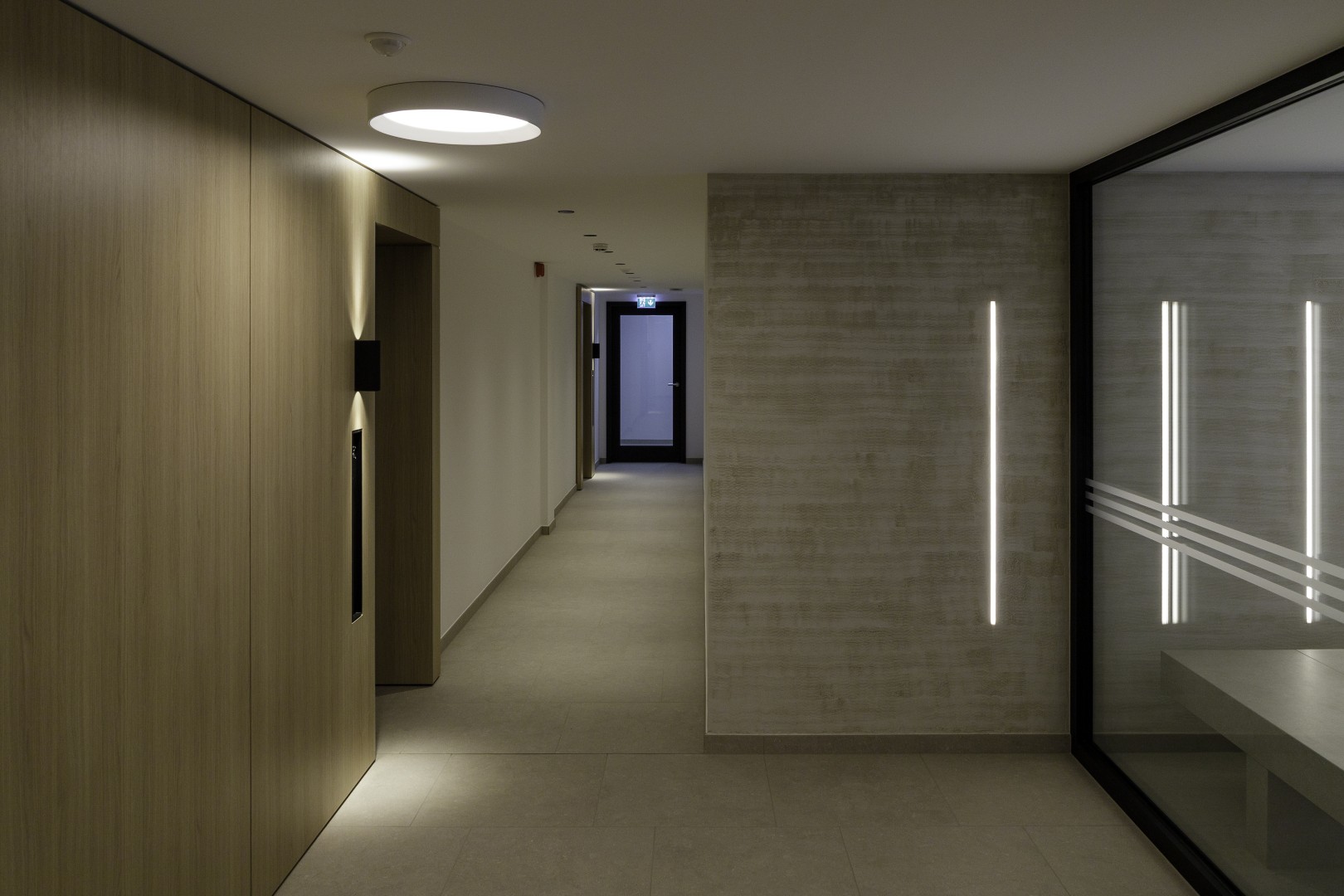 Die Umgestaltung wurde dem luxemburgischen Büro Fabeck Architectes anvertraut. Eine der wesentlichen Herausforderungen war dabei das Licht: Ein Bürogebäude nutzt natürliches Licht grundlegend anders als ein Wohngebäude. Das Team analysierte die gesamte Struktur, um zu bestimmen, wo geöffnet, Glasflächen vergrößert und Raumvolumen an die Anforderungen des Wohnens angepasst werden konnten. In diesem Kontext gewann die künstliche Beleuchtung eine besondere Bedeutung.